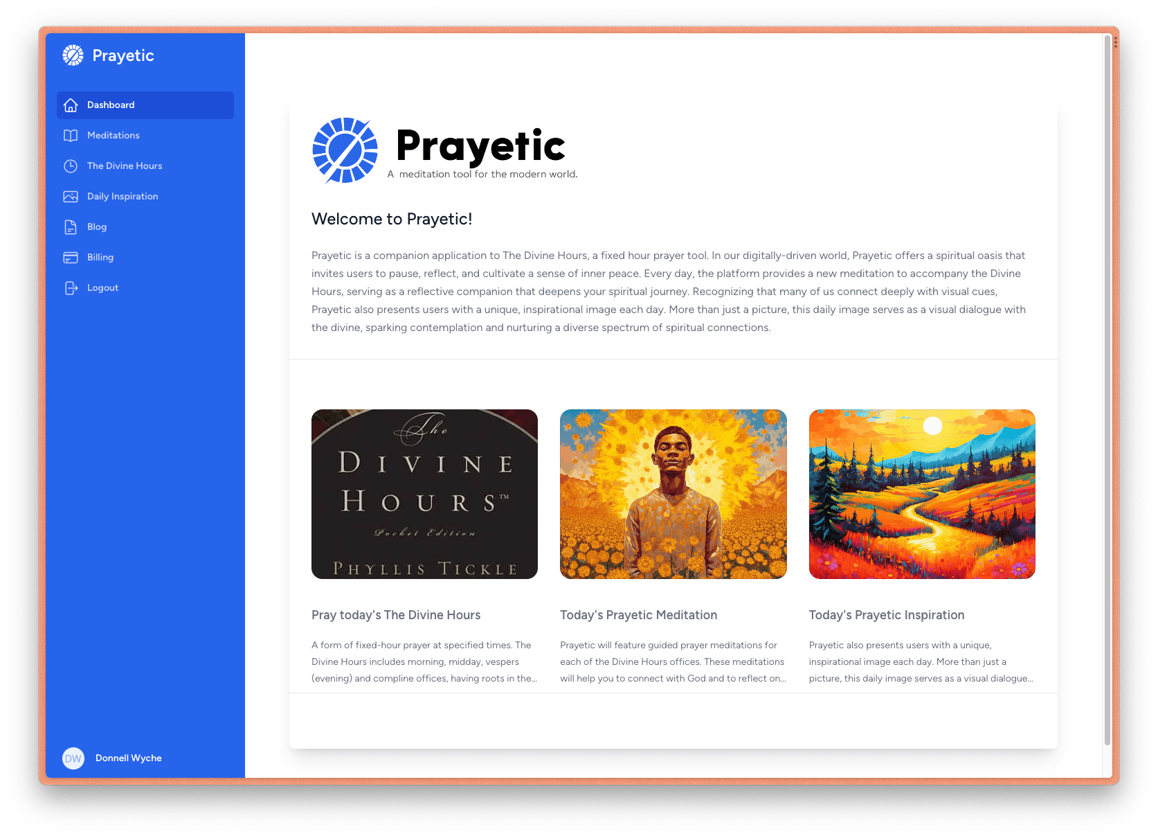 Prayetic has been a sanctuary for me. The guided meditations, inspired by the Divine Hours, have deepened my connection with God and brought tranquility to my hectic life.
